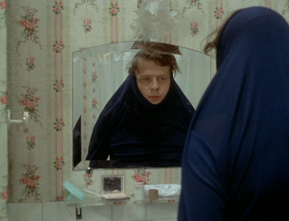 An important and wonderful point was made to me in the wonderful conversation I had after I watched this film for the first time. Rohmer posits the moments Frédéric has with his family against the moments he is flirting with women or with Chloé. At home he plays the clown, he makes himself into a fool to amuse his child and to convince his wife he is interacting in a family way. It is an act, just as the desire to see himself with all the women is an act, but both are acts he manages to lose himself in, refusing to examine himself. At the point when Chloé presents herself naked on the bed, completely available for him, Frédéric goes to the bathroom to undress. As he lifts his shirt, he catches himself in the mirror in the same clown pose he was playing with his child in earlier. At this moment, two worlds collide. He sees himself as a fool now, rather than at home, in this room with this woman in this way. He is ultimate fool, playing games everywhere he turns, never connecting within himself. This is a man who does not know what he wants or who he is. (a wonderful, typically potent understated Rohmer moment revealed to me in a wonderful conversation)