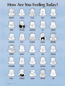I like to lay claim to a lot of feelings. At least I thought I did. I was a bit like Homer from the Simpsons. I had: “You’re driving me crazy.” and “My stomach hurts”. As Dorothy Parker would say, “I had the full range of emotion from A to B”.  As a teenager I had “No one understands me” and when I hit my thirties I had “How do I cope with my own greatness?”