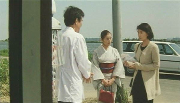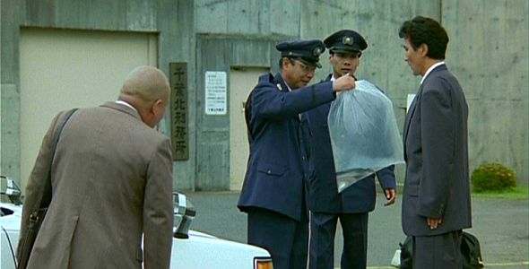 Tipped off by an anonymous letter, the innocuous salaryman Takuro–played by Koji Yakusho returns home early from an all-night fishing trip and, catching his wife in adultery stabs her to death. The credits come up as Takuro bicycles to the police station to turn himself in.