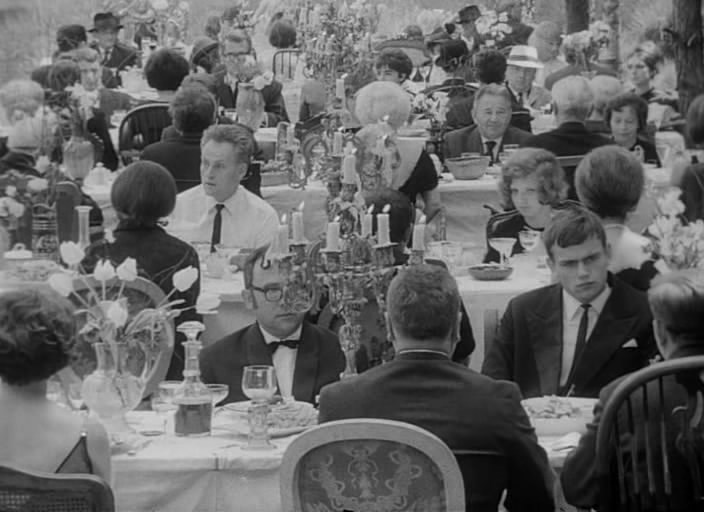 Comparisons have also been drawn between Němec’s films and the more overtly Surrealist work of Luis Bunuel. Němec’s first feature Diamonds of the Night (1964) not only depicted one of its protagonist’s faces crawling with ants in overt homage to Un Chien Andalou, but also blithely intercut dream and reality without distinguishing the two. Though Němec would not see the first until the 1970s, and the second wouldn’t be made till then, The Party and the Guests can be bookended very neatly by The Exterminating Angel (El ángel exterminador, 1962) and The Discreet Charm of the Bourgeoisie (Le Charme discret de la bourgeoisie, 1972). Indeed, either of Bunuel’s titles could conceivably be reapplied to Němec’s film when thinking of the far-reaching powers of its white-clad, deeply sinister ‘host’, or the discreetly charming picnickers who are generally content to go along with the film’s increasingly bizarre events (even if it means denouncing a former companion).