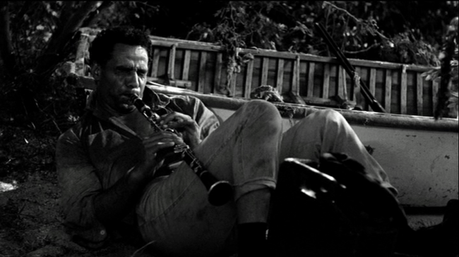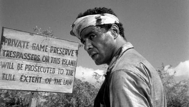The film opens with a woman screaming “RAPE!” off-screen–an automatic death sentence for any black man accused by a white woman in that time and place–a black jazz musician named Traver (Bernie Hamilton) escapes a blood-thirsty lynch mob, using a motorboat to reach a small isolated island that serves as a private game preserve for the wealthy. He soon realizes he is not alone.