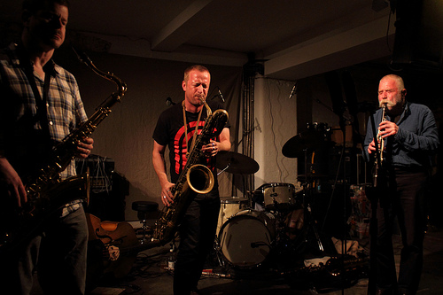 Sonore is Peter Brötzmann, Ken Vandermark and Mats Gustafsson; seasoned players who each have credits listed to their names. They come together as Sonore which is its own unanimous committment to their music as a process. These are players each intimately engaged with their instruments, allowing their engaging to be a perpetual lesson in measure, exactitude and courage. They are the salad bowl of improv! In a salad you want to eat your meal, but you want your tomato to remain tomato; Your lettuce to remain lettuce.