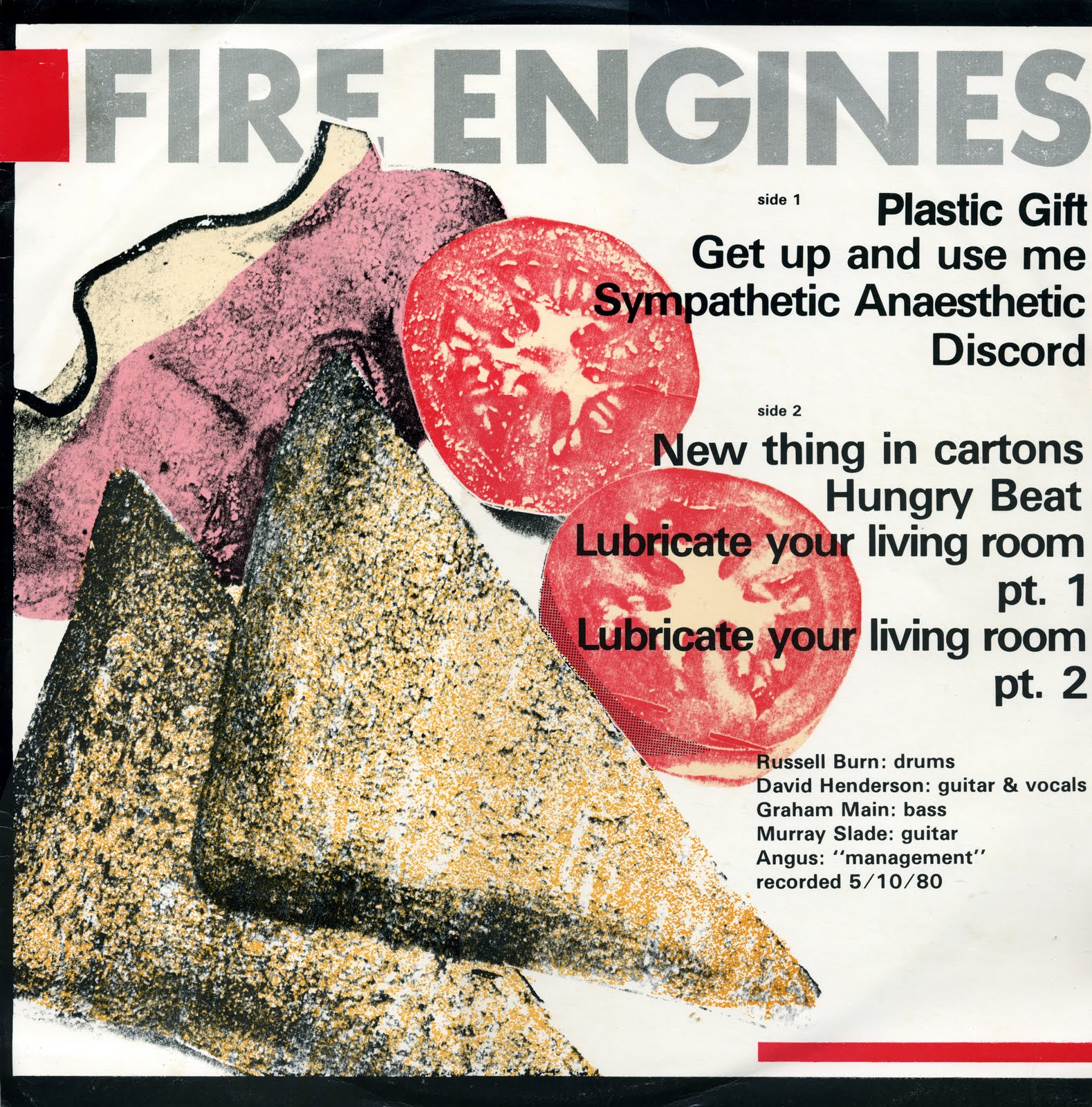 This album is so cool its hot. Fire Engines are a post-punk band from Edinburgh, Scotland. The band was a part of the same literary art-punk scene as the Scars and their most famous contemporaries, Josef K. They grew out of the Dirty Reds which had actor Tam Dean Burn as singer. Vocals and guitar were performed by David (Davey) Henderson, guitar by Murray Slade, bass by Graham Main, and on drums, Russell Burn. The Fire Engines were noted for “Get Up And Use Me”/”Everything’s Roses”, and singles and LPs in 1981. Sometimes I love post-punk even more than punk itself. check out what The Wire have to say about this album: This mini-album offers the freshest of the various inspired rethinks of the electric guitar that came out of post-punk Scotland. Guitarists Davey Henderson and Murray Slade spooled off writhing, dissonant lines of energy that spoke of obsession and entanglement. The music claimed the riff back from bad rock – all the pieces work on nagging, repeated bass and guitar lines. But there was no truck with regular rock rhythms – the group rode on the tightly wound, oddly paced bounce of Russell Burns’s snare hits. Henderson’s vocals are frequently shrieks (“Get up!): the ‘songs’ are essentially guitar instrumentals. The group’s interest in the warping neuroses of consumerism was reflected in the packaging (the record came in a plastic carrier bag) and titles such as “Plastic Gift” and “New Thing In Cartons.” Listening back to the lo-fi, ‘live in the studio’ approach, it’s striking what an unusual sound the group achieved – the harsh, electrifying prickle of the guitars (Rickenbackers, as I recall) and the trashy fatness of the drums. Speedy, delirious and unrepeatable.