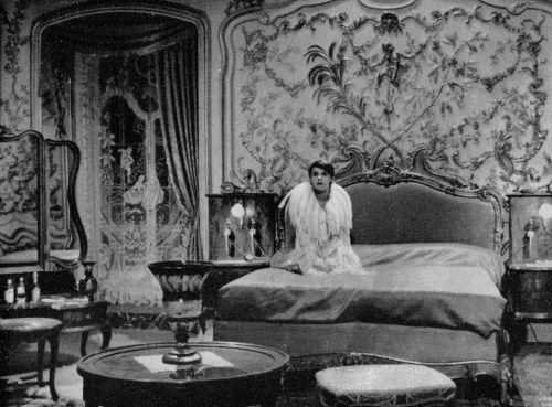 the hotel is pictured as an engulfing labyrinthine structure of mirrors and intricacies. Marienbad – the time, place hotel and film – is about repetition and reflection. Time appears to stand still. time is caught in a single moment that seems to stretch through eternity. To quote Rivette again, “… the infinite … contained within the very short interval seeing as the time… can just as well last 24 hours as a second.”