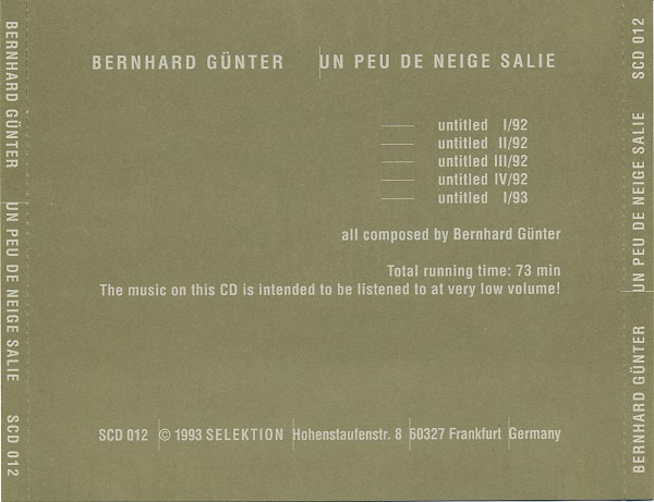 It has been said that brilliance is achieved not by what you add but by what you remove. This album is a point in favour of that theory. Its no secret to those who read this blog that I love these examples of musical restraint – the study of the sounds between the words. All the “music” has been removed here and we left with the sound of the mastering and mixing process. Microscopic pops and buzzes flicker across the surface of nearly imperceptible high frequency tones – unless you listen to it in a quiet space or on headphones, it may seem at first to be completely silent, and the CD pressing plant at first returned the master tape to Gunter as ‘faulty’. Its humility is beguiling – once attuned to their subatomic universe, the sounds become strangely compelling. The disc heightens awareness of your immediate surroundings and the rarely tapped full potential of the human eardrum. Note the instruction on the album cover is to play this music softly. You have to stretch toward it – reach out to listen. So beautiful.
