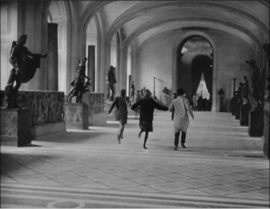 Wood analyses the classroom scene in detail, pointing out that as a ‘straight’, narrative sequence it works well to set up the relationships between the three central characters, but as a classroom lesson it makes no sense, unless we are prepared to ‘read’ it in terms of the cultural references and juxtapositions between the characters in the room and the literary heroes of Hardy and Shakespeare. ‘Collage’ as Wood presents the idea, refers to the ways in which Godard attempts to persuade us to think across scenes in a ‘thematic’ way. The best example of this is possibly the running commentary on ‘life’ and ‘art’ that is the characters’ own understanding of gangster heroes in ‘real life’ and the cinema. The robbery attempts are shown, often in longshot, in a way that recalls the ineptness of early cinema clowns, but when the characters consciously ‘play’ at gangsters, in the famous shot of Arthur dying as Billy the Kid, the scene is structured to evoke the generic power of the Hollywood version. Other aspects of the film that continue the ‘collage’ effect are the dance scene in the cafe, Odile’s song, the stories the men tell and the race through the Louvre.