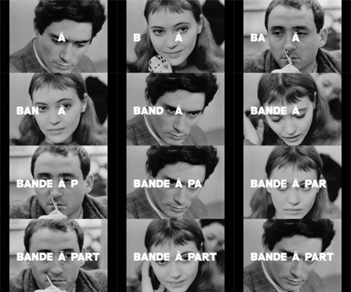 Robin Wood (1967) sees Bande à part as a halfway point in Godard’s development as a filmmaker. Still recognizably a (genre) narrative film, there is a much clearer sense of moving towards a more radical approach. Although elements of the earlier films had already shown evidence of Godard’s interest in disrupting mainstream cinema  they are here for the first time presented as an integral part of the whole: “Stylistically and structurally the film is built on two tensions which characterise all of Godard’s work, but the opposing pulls in each here find a unique balance the tension between traditional narrative and what I have called collage; and the tension between naturalism and stylisation, both pushed to extremes.” (Wood 1967)