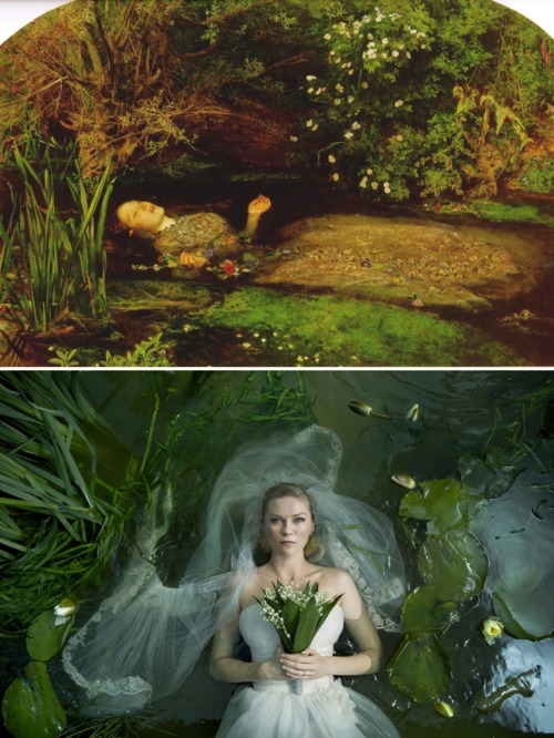 There is an intentional inconsistency here. Ophelia is the image of hysteria. Justine has melancholia. These are two feminine “diseases” that von Trier wants to bring together into the body of Justine, and into the body of the earth. Hysterics connection to nature.