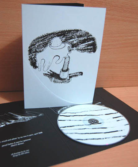 Toc Sine is a joining of the forces of Pascal Battus and Jean-Luc Guigonnet. It is a deeply meditative disc that comes with (as far as I can see) no explanatory notes, or detail in the blurb on the Cathnor website. The album title – Drawings – and the track titles bear some clues, with titles like Plan for Casting the Sforza Monument, metronomic irregularity 2, Delocazione (roughly translated relocation) and Die. This is a disc that applies sound to the act of creation – that is the creation of a work of art rather than some vague spiritual sentimentality. The sounds are varied. They move from electrical improvisation to human sounds to tape being peeled off a roll, and other disembodied noise that becomes something other than the other it is when grouped into a certain kind of space. The sounds don’t languish, rather they float and tumble lightly over each other as they move in and out of conscious reference. Sometimes they evoke an image, sometimes they evoke a live improve, always the evoke the moment the artist “finds” the work in amongst the jumble of creative impulse they have strung together using nothing but their faith to call forth the new work.