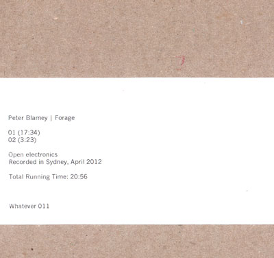 The short blurb on the back of the beautiful Avant Whatever disc by Peter Blamey, Forage has this to say: