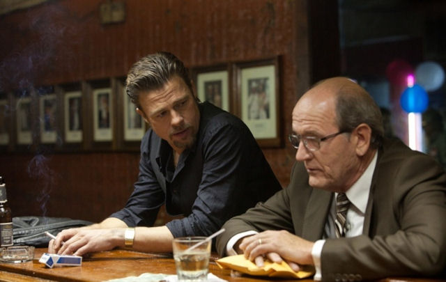 Crime is the pedestrian shadow of the law-abiding suburbanite. These films are the fantasy of the law-abiding male who longs to be cool, respected and able to “take out” those who disrespect him. Of course no fantasy imagines themselves as the victim, only the super cool “baddie” who will axe everyone else. I can only guess guys (’cause they are famously ‘boys’ films) watch these films imagining themselves winning at such a scenario. This produces a nice subtext that is brought out by the constant play of the current events against the “gangster” world in the film. We now see the wall-street-tycoon as another version of a mobster, complete with their dumbness and their ruthlessness, (remember Jeremy Irons telling us “God knows I didn’t get where I am today by being smart.” in Margin Call) but also their complete engaging with a fantasy. A belief that who they see themselves as, is who they really are. In this way the film brings something a little fresh, if perhaps unintentional. With the addition of the jaded mobster Mickey, hilariously played by James Gandolfini and the on-screen death of local wiseguy Markie (Ray Liotta), another face we associate with the mobster, there is a glance at the death of that macho idealization of the “man” as the centre of the universe. Brad Pitt gives a rather hackneyed speech incredibly well (I’m not a Pitt fan, but when he’s good he’s really good) delivered at the end of the film claiming America is a business – nothing else. This speech, in this context, seems delivered against the fantasy macho male, whether he be today’s mobster or today’s tycoon. These days it’s all a business. And you’d do well to leave hero-fantasy ideals at home.