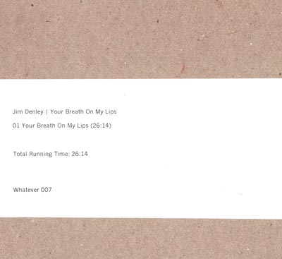 So the circular breathing produces a continuous sound. Denley achieves this sound with a balloon over the mouthpiece of his sax. I saw him live earlier this year at an Avantwhatever launch, and it was a really interesting watch. Your Breath on my Lips is a combination of recordings made previously that Denley decides to place together. The title is a mash-up of lines from a truly brilliant poem by Amanda Stewart that can be read here.The first recording is balloonsax made as an installation for ‘Visionarium’ in 2011. The second recording, interestingly, is the sound of 100 snails made for an installation called ‘Ecstatic Voices’. The two installations have been “mixed” to form the recording on the disc.