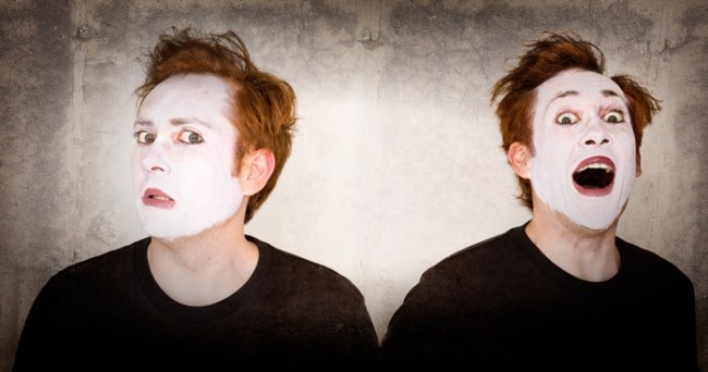 The Venetian Twins is a Nick Enright and Terence Clarke adaptation of a contemporised and Australianised version of the original while remaining true to the spirit of Commedia dell’arte – a form of travelling theatre that started in Italy in the late 17th century. Through a convoluted series of steps that possibly relate to the period between Epiphany and Ash Wednesday known as Carnivale, the actors – despite the purpose of the travelling theatre to make the actors more well-known – started to wear masks. This tradition is upheld in the 2012 version of The Venetian Twins where each stage performer has their faced masked in white paint. The mask also speaks to the duality of meta theatre that dominates the production. True to the originals, the play is still a showcase of the talents of each performer, so much so one gets the sense the play is about its performers rather than its script. When Enright and Clarke wrote the original (at least the Australian version of the original) parts were written with specific actors in mind, a clever way of showing actors acting their best as actors – a bit of meta twist there.