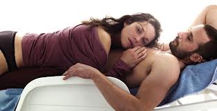 This positive use of melodrama fascinated me. It lies at the heart of what makes Rust and Bone an exceptional film. There is a relationship between the melodrama we create to authenticate our lives and the melodrama we see authenticating fiction on the big screen. Following on from this idea, Audiard uses a pared down script, a simple plot line and minimalist acting as framework for the cinematography that takes responsibility for carrying the messages of melodrama. It’s a style of filming Audiard and Bidegain have called “expressionist”. In this way a pared down natural realism is posited against its opposite, amplified melodrama, surreal imagery and heightened experience. Take the moment where Stephanie (Marian Cotillard) is in an accident that will cost her legs. The accident is over very quickly. There are flashes of a giant whale landing wrong, sets and props breaking, the horror on a woman’s face, and then and underwater shot staring up at chunks of the set crashing into the water and a floating body with blood pouring from it. The shots are surreal – just a string of images we make of what we can, in many ways as beautiful as they are tragic. Yet in the next shot, Stephanie laying in the hospital bed still sleeping, we see where the undercover bump of her legs stops and we realize she has lost both of her legs. At this point, we know the story is about to begin.