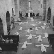 The film opens with an image of Father Suryn prostrate on the ground, arms outstretched as if he were imitating Jesus on the cross, which he is doing. Only the camera shoots him from above and upside down, evoking the death of Peter and also a symbol of Satan The film is rife with these sorts of images, that usually take the breath away with their patient beauty. The texture of a wall comes to symbolize the mental destruction of a Priest. Habits on the washing line, the fragile separation between Priests and Nuns as men and women.