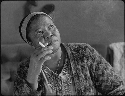 While the original Tabu is a silent film, the second Tabu is and isn’t at the same time. The first half is clouded over with long-winded intense narratives that drowned out by the absurdity of an industrialized Lisbon. People tell story’s in long drawn out sentences over coffee in cafes, or in short enigmatic bursts that reveal in a universe in seven words. The second half of the film, the one where a great and shameful secret crime is revealed (read colonialism) is a kind of deconstructed experience with sound where one can only hear Africa in the noise of the land; all the people, black and white have no voice. Colonization is represented in contemporary pop music (much has been said about the stunning music in this film, so I won’t go into it here) and the protagonists narrative is a voice over in the multiple forms of straight narrative and, absurdly, in letter reading. In other words, we only hear the story – that is the version – people are willing to tell either in the passed along mythology or the written histories. We never hear the story as is it played out for us as witnesses. We are told what happens. We are only given other perspectives in highly masked and glossy images. It’s a wonderfully clever way to reveal the complexities and problems of the study of history, with Gnomes endless kindness and love of cinema at its core.
