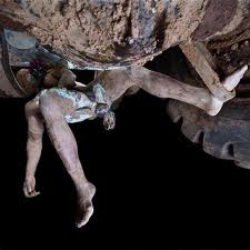 The first film is a recognition of the importance of the phallus and the mental masturbation for males that comes from big machines. Matthew Barney creates a gorgeous film where men are shown to be working those large-scale mining machines, enormous in capacity and power, and underneath the machinery an erect phallus and its sprouting seed runs and oils the machines keeping them going. Close ups of the penis as it is (untouched) moving from half to full erection are intensely erotic, as are shots of the masturbation on the enormous spinning lubricated cogs themselves.