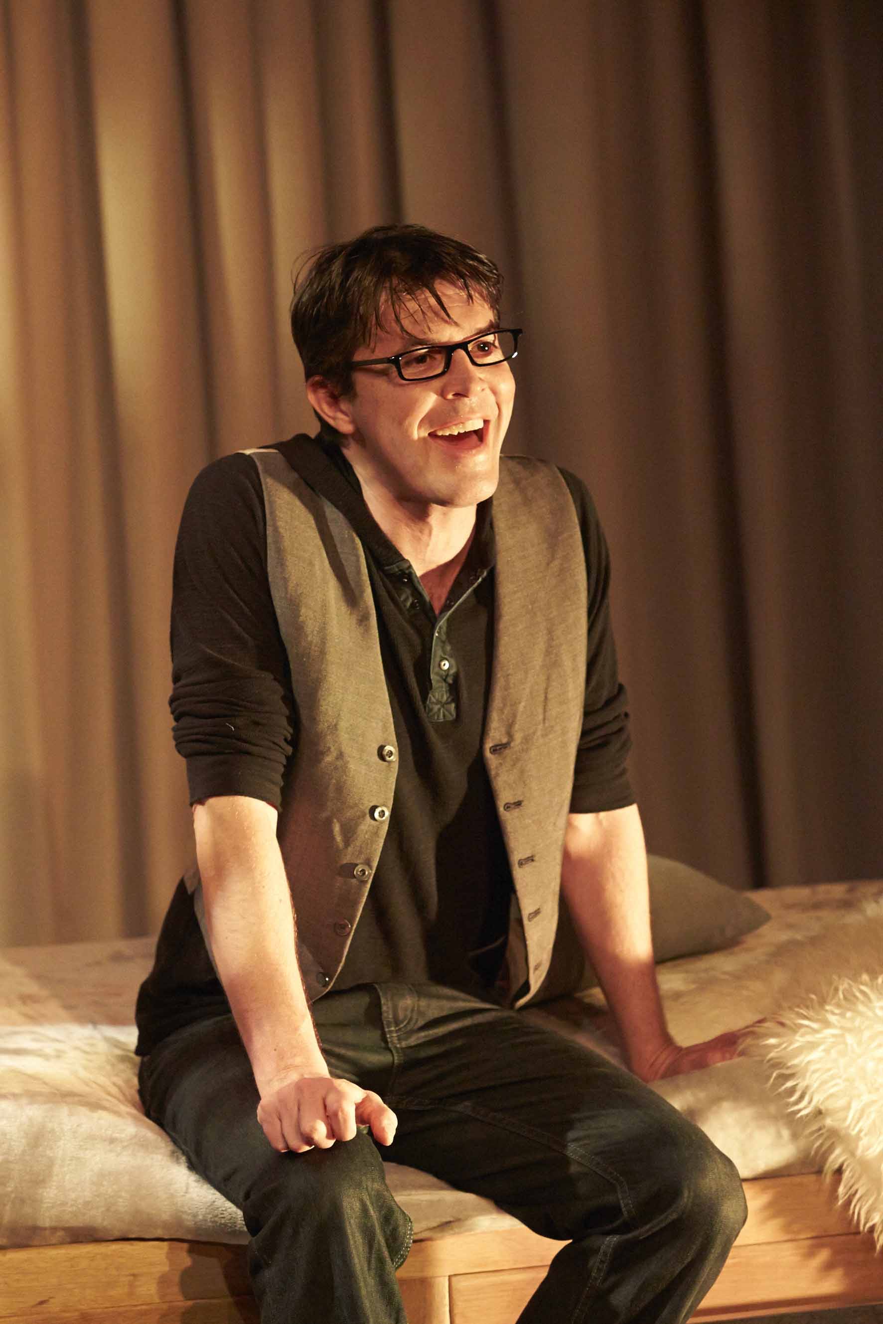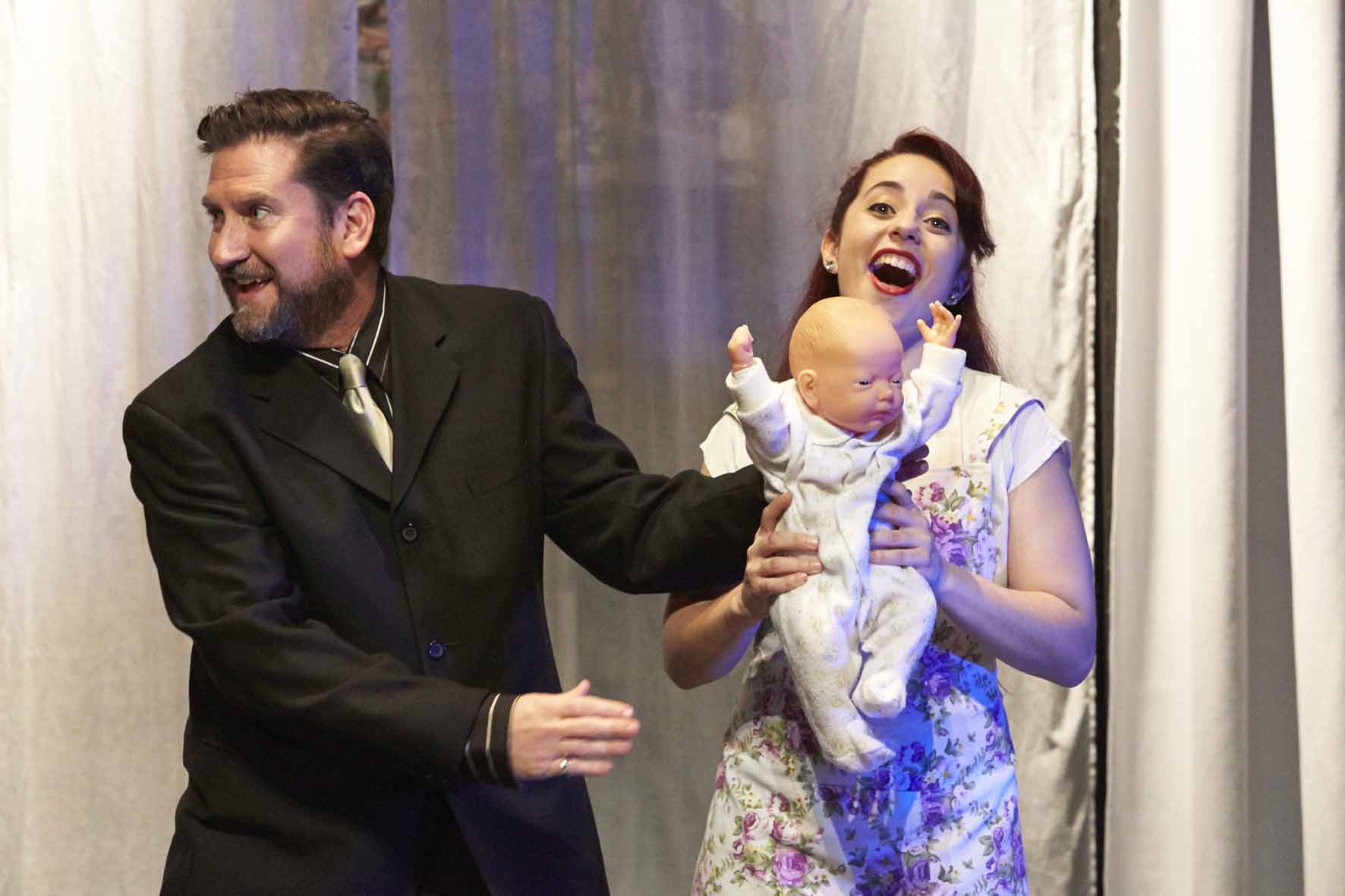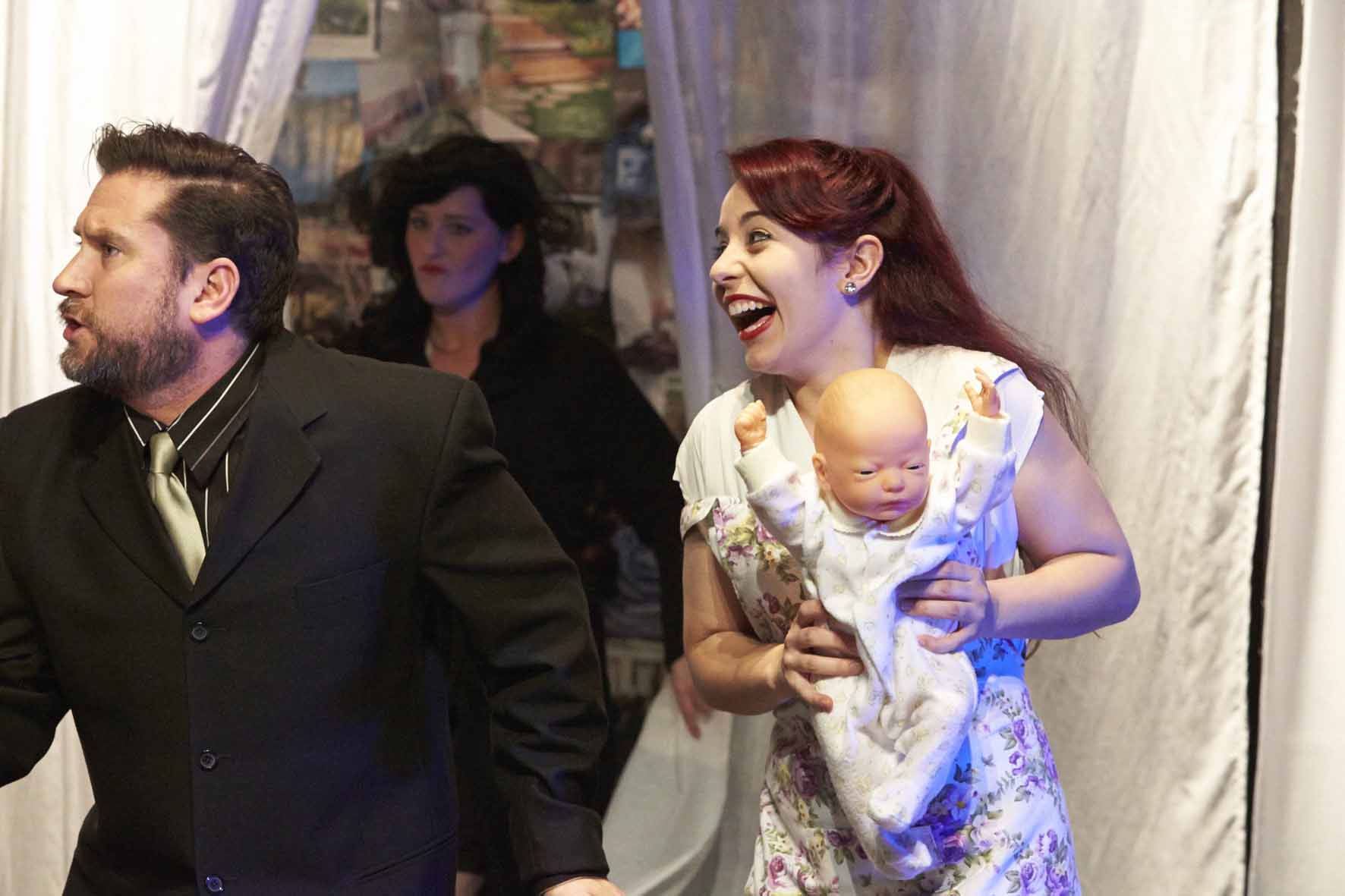 Of course, all of this helps if you have an incredible cast. Meredith O’Reilly, fresh from her role as Grandma in the very successful Adams Family musical, plays Ruth’s imagined mother, constantly haunting her with her first rejection, teasing her about her lack of success as a “real” woman. She is a strong voice of derision, playing antagonist to all of Ruth’s thoughts, literally the “voice in her head” holding her back. Charlotte Kerr is a graceful presence, playing the above mentioned torch singer and the young mother eventually found by Ruth. She is a quiet gentle presence among rather boisterous songs, although she really comes into her own with a very funny song about filling in multiple forms at a birth, deaths and marriages register. Tyran Parke is excellent as the young gay Joel who has been asked to be the “donor”. One of the marvelous things about Lifeforce is the detail these modern arrangements involve, and the negotiations between Joel and Ruth and they work out how much of the small child each of them “owns” are amusing and at times fraught with the inevitable emotional humanity one would expect when these sorts of agreements are taking place. At one point, Joel and Ruth’s conversations occur as a pre-nup of sorts; a warm custody battle being arranged long before conception.
