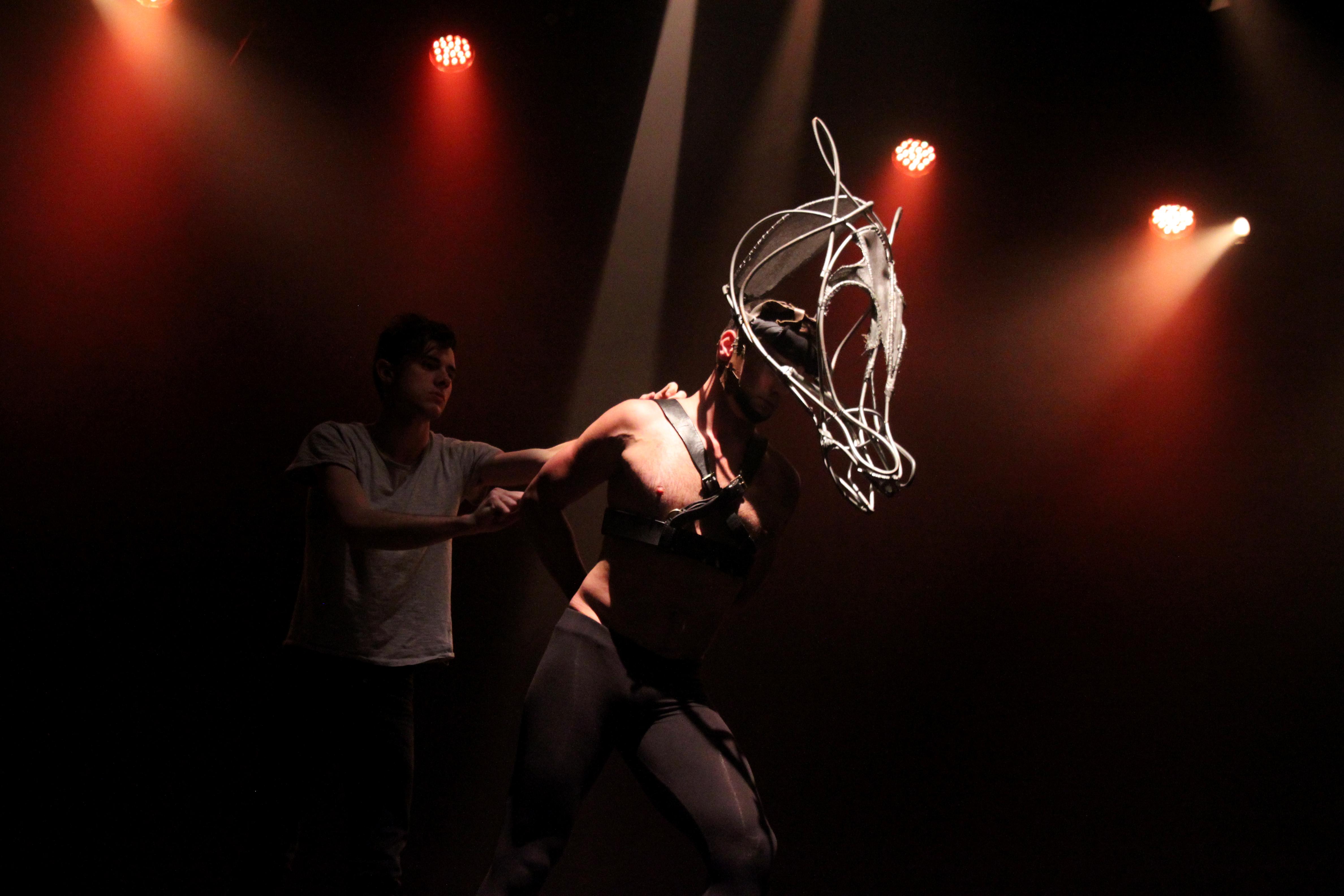And now, as a highlight of the Sydney Fringe Festival, Michael Campbell directs a modern Equus, still true to Shaffer’s vision, but modernized, dream like, and surreal. For Campbell Equus is a question of masculinity, and that which cripples our sense of self. If Alan Strang’s passion kills his ability to relate, then Michael Campbell uses Equus to raise the questions of why. If Dysart’s acquiescence in his crushing obedience is the unavoidable consequence of living a right life, then Michael Campbell uses Equus to ask why of that also. Working with him on this journey are the brilliant talents of Martin Portus as Dysart and the haunting Michael Brindley as Alan Strang. Portus’ Dysart starts out smug and self-satisfied in his unremarkable life he worked so hard to create, yet through the withdrawn, internalized private passions of Alan Strang, he folds at the knees, making his cries not on a mountain top, but into the top of a glass of whiskey. Michael Brindley is a disarmingly arresting Alan Strang, both psychologically and physically perfect for the role. His Alan Strang is vulnerable and fragile, with a laser like stare that can bore a hole through steel. The two men, one at the start of his life, one getting toward the end, together make Michael Campbell’s man; both of them part-time saints and part-time monsters.