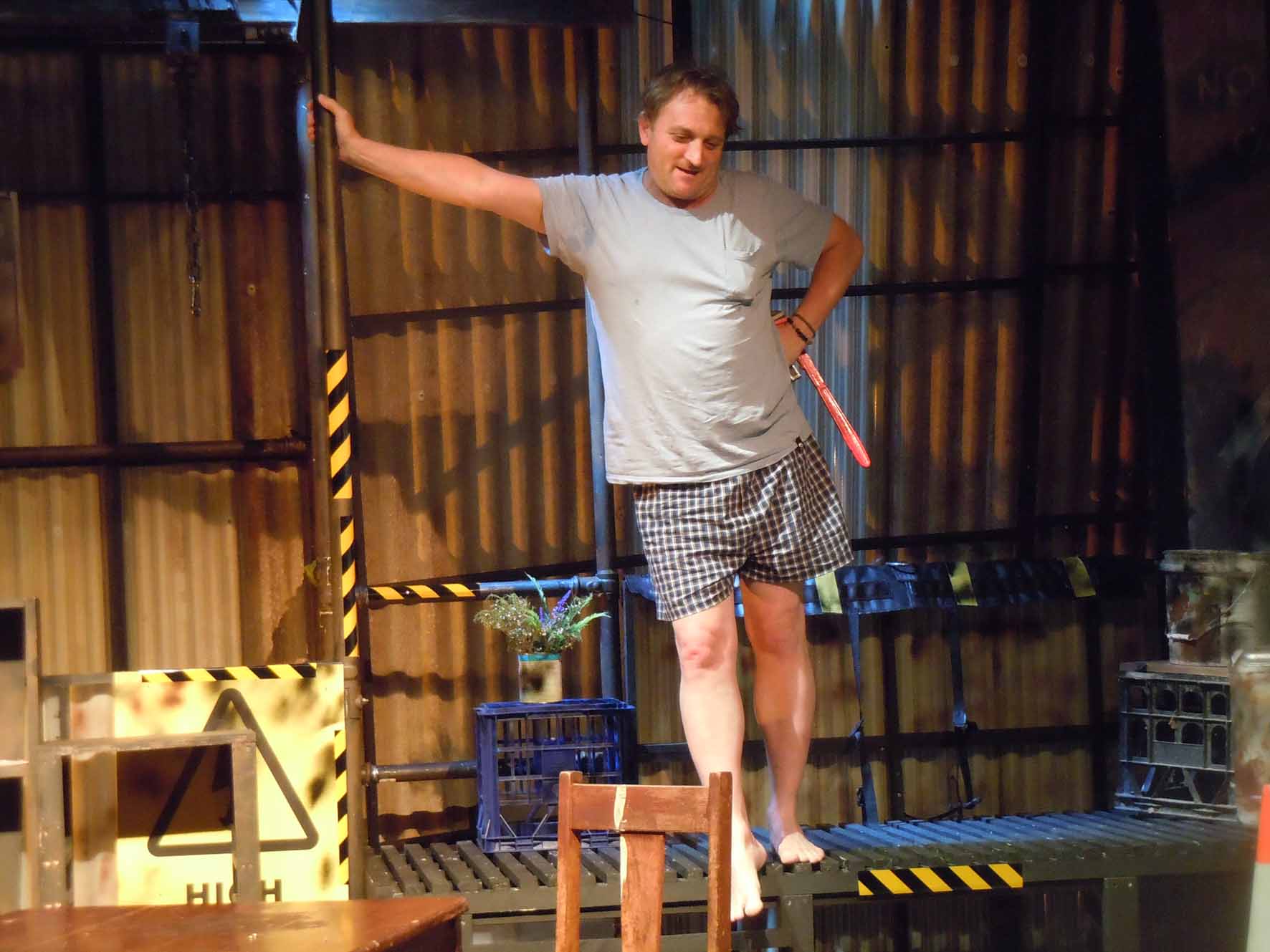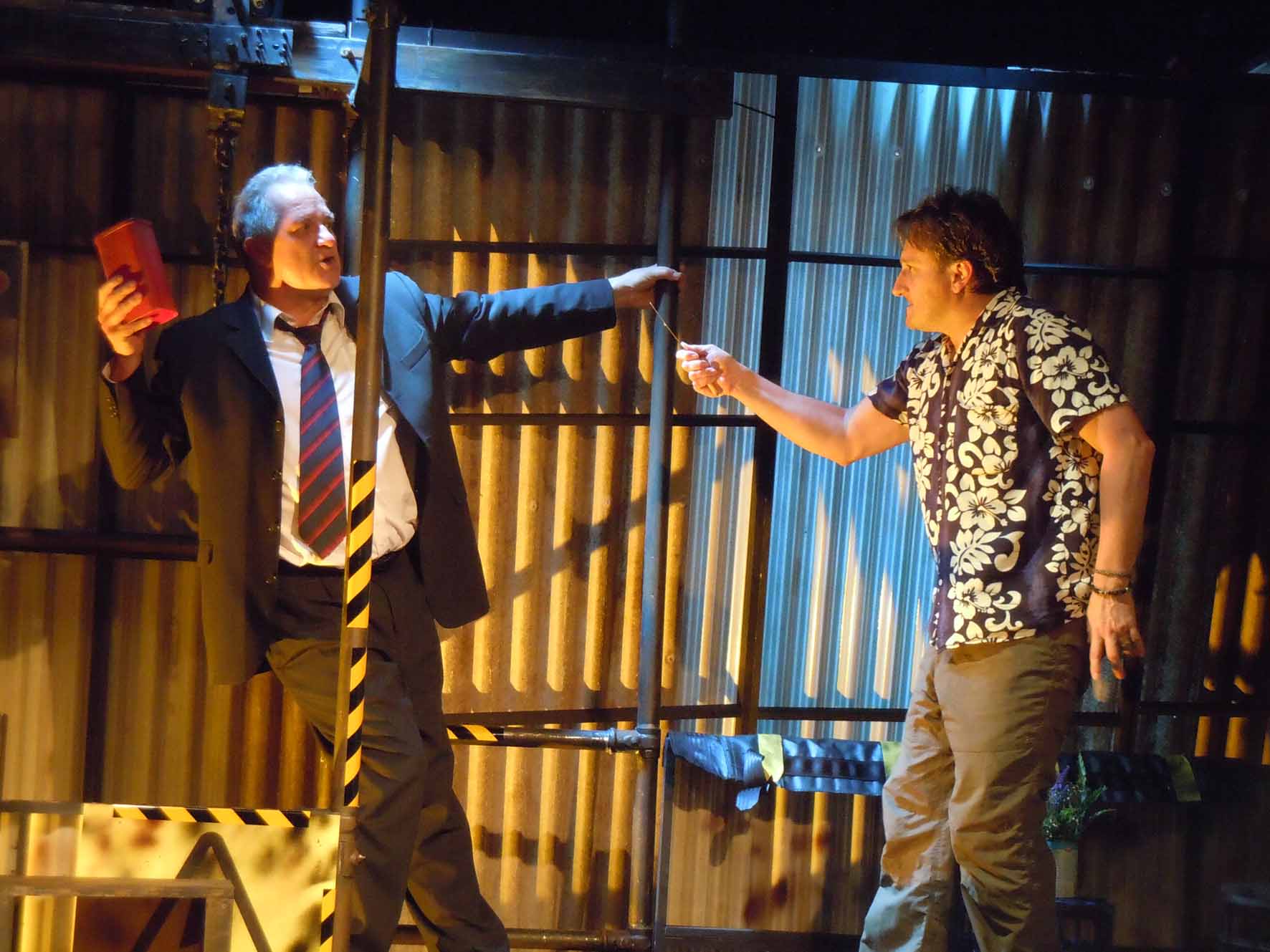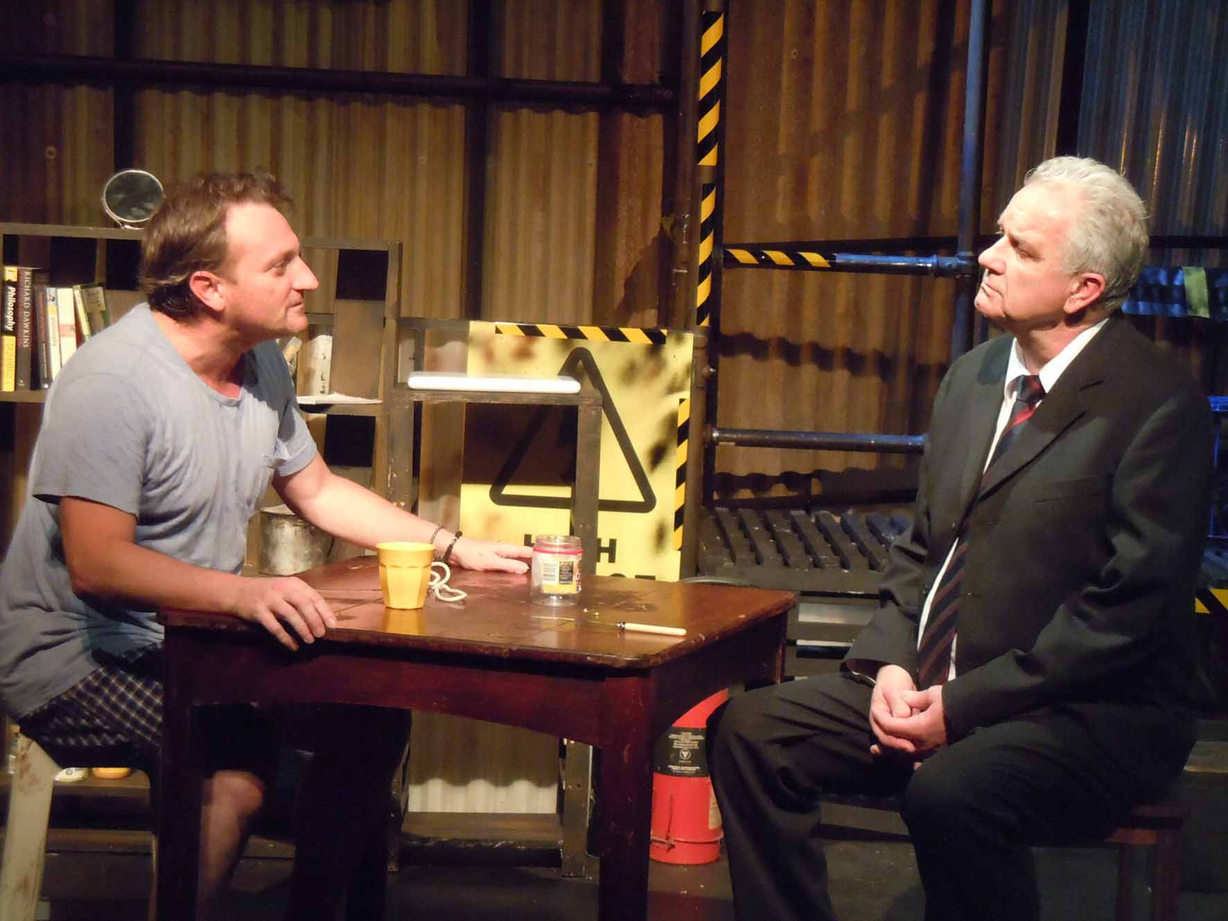 It is these complex issues Gerry Greenland wants the audience to consider during his play, The Maintenance Room. Edward is a man who stands at the precipice of losing everything. As if to dramatically enact his personal downfall, he enters an old factory, makes his way to the very top (the maintenance room) and prepares to jump to his death. As he contemplates his leap into the abyss, Vincent, a vagrant currently occupying the maintenance room, catches him and talks Edward into delaying his jump. Familiar with Jungian psychoanalysis and eastern philosophies, Vincent uses certain actions – literally acting out – to take Edward by the hand and walk him through what Jung called a “stage of life”, where an individual will travel from despair and fear of losing all they cling to embracing an unknown future that will see them grow and change. However, as Edward grapples with his darkest demons, he and the audience come to realise Vincent has his own journey to make, and Edward may be the catalyst for that.