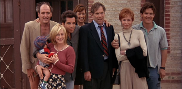 I haven’t been able to get a copy of Spanking the Monkey yet, but I have several channels in process as we speak, so I’m hoping to catch it before the end of this week in which I’ll take a look at what makes David Russell such a good film maker. In the meantime, I’m forced to begin this journey with Flirting with Disaster, a cleverly complex film, that at the surface seems to be the launch pad of the film style mentioned in this opening paragraph, and yet brings up some of the more hidden themes Russell will continually deal with in the future. Flirting with Disaster is about babies and sex, the fact that we were all babies, the way we reconcile our parents sexuality with our own and the unavoidable observant childs eye, even in the mature adult, as we watch and wonder / muse / imagine the intimate lives of our parents central to our own act of creation. The film opens with an image of an attractive silver-haired woman walking down the street. She is confident, nicely dressed, and most importantly, she is sexually confident. Ben Stiller’s voice over informs us he is watching women in the street wondering which might be his real mother. His questioning briefly moves towards fathers, then its back with women again as he wonders about the sex life of his real parents. All of the characters, male and female are sexual, Russell’s camera does not see age as a barrier to sexual desire – a theme we will see again and again, for example in I heart Huckabees when Naomi Watts perfect youth and sexless sterility is posited against Isabelle Huppert’s older woman who is the epitome of desire – David Russell loves sexually desirable austere older women. But in Flirting with Disaster it is the sensuality of fertility that most catches his eye, the fresh plucked peach round sensuality of Patricia Arquette’s Nancy juxtaposed against Teo Leoni’s Tina whose cold sterile thin perfections are never able to compete – even in the viewer’s eye – with the confidently milky sexuality of a woman who has recently given birth.