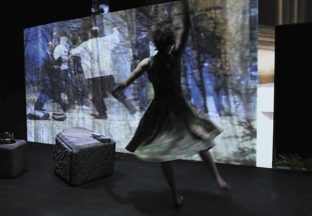 But this is no mere retelling of history. Verscoe retains her relationship with both Bosnia and the audience, relating at all times her experience, her guilt at realising there may be a fetish side to thanotourism, previously unrealised, and in a theatrical highlight of the performance, dancing away the sadness of the country to “take on me” with a Muslim man performing in the street on the film behind her. As the artists and the recorded street performer dance in unison, the coalescing of experience, memory and narrative form a perfect moment of essential and exquisite story telling. Kym Vercoe perfectly aligns her own experience with the experience of the audience and manages to bring something alive that must never be forgotten.