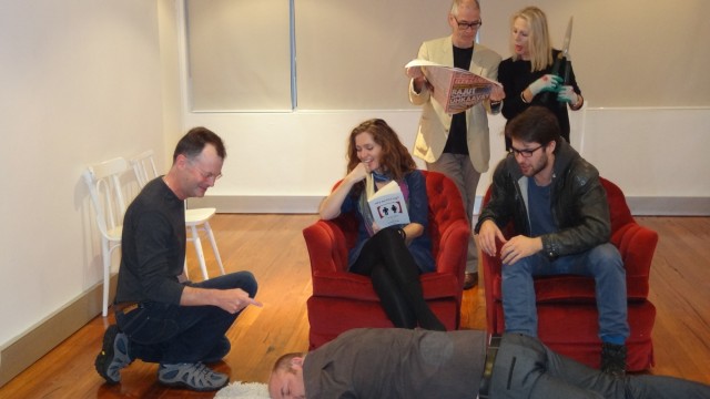 Through all this absurdist meandering and philosophical angst is, of course, the reliably brilliant Simon Dodd humour. As I alluded to earlier, Plaything is part piss-take, part reverential in its fast paced, circular dialogue, and the overall joke of “could absurdest theatre simply be two people who couldn’t find the bathroom,” sits all too uncomfortably close for those of us who get a little precious about this style of play. Add to this the delightfully absurd story itself of how Plaything came to be, with Simon Dodd’s play getting approved for the comedy festival, only for Dodd to discover he had to do put it all together himself. Suddenly he’s a first time director, a first time producer and – miraculously – came up with an absolutely stellar cast. I accidentally sat next to Heath Ivey-Law when I walked in, not realising he then had to squeeze past me to get to the stage, but this sort of mishap is consistent with the road blocks Dodd encountered and overcome with this great production. Everyone on the stage is at the top of their game, even poor old Peter Adams who has to spend the bulk of the show as a corpse. A special shout out has to go to the always amazing Tricia Youlden who I have a girl-crush on; she electrifies every stage she walks. Tricia and Richard Cotter were particularly funny as the most peculiar couple from “the play next door” and the vision of them waving through the doors was truly hilarious. Plaything is held together by Heath Ivey-Law and Jodine Muir, as they keep the audience wired and attentive through what ostensibly is an hour long conversation asking, “What is going on?” Simon Dodd has done extremely well with his cast, particularly for a play that had such a short prep time.
