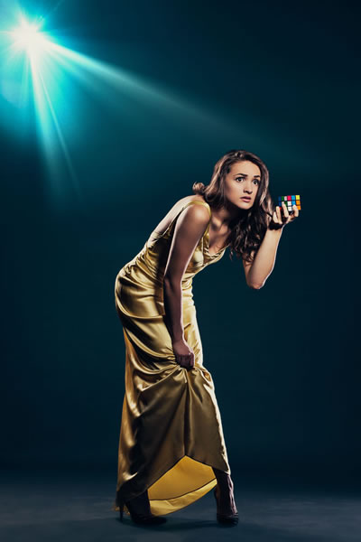 Her tale of her life, no small feat when one has experienced so little of it, is confined to self-reflection, a trail of her neuroses as represented by the various shows, objects, people and things she has become obsessed with, as she has learnt how to cope with the fears and scant reassurances an acting career dumps on those determined to make it. It’s a good idea, because on the rare occasions when she falls into reminiscing about “life”, such as toward the end in a touching tribute to her husband, she inevitably steps into a role and out of the youthful Diva we are growing to love. These moments are rare however, and for the most part, Hilary Cole’s reflections on her obsessive compulsive disorder that reached its zenith with her Rubiks Cube under sixty seconds PB, is a delightful tale of a very talented young woman living with the stresses of wanting to be an artist.