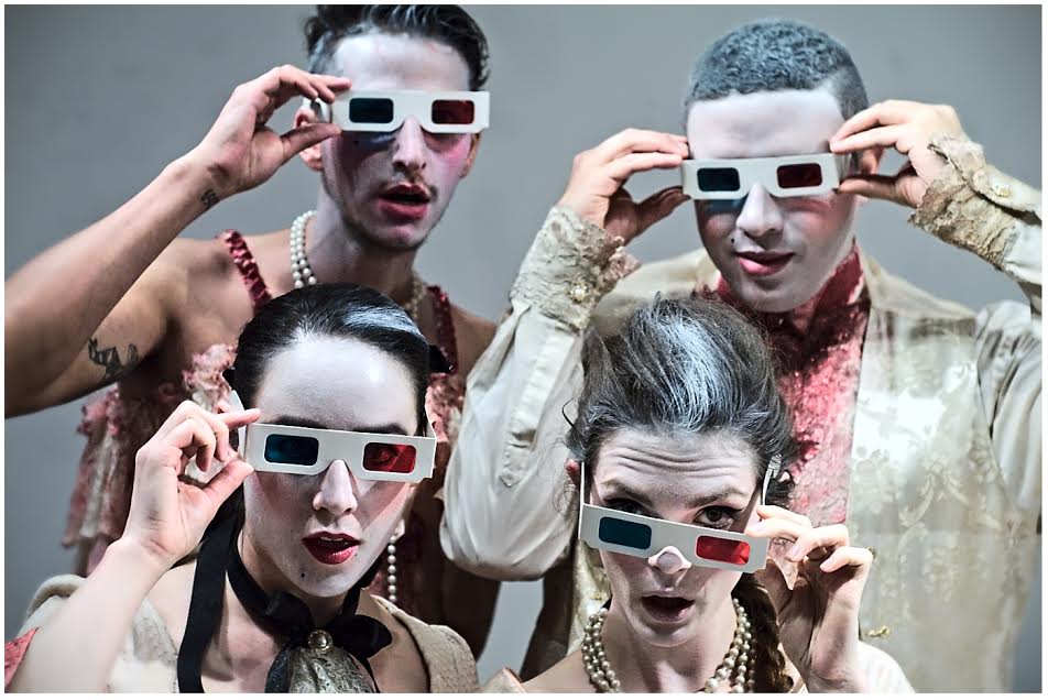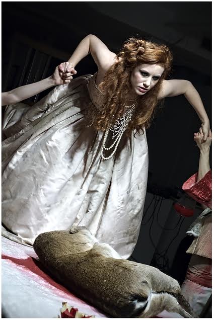 Michael Dean’s production of Phaedra is not just flawlessly cast and not just exquisitely designed – it throbs with a life that all the cast tap into in equal measure. Dean has been able to evoke a passion for the work in his cast that goes beyond “enthusiasm for the text”. One has the genuine feeling of the cast being lost inside the performance, a true falling away of any selfhood that retains that connection with the real I mentioned in the first paragraph. When Aphrodite forces her horrific damnation on Hippolytus, her spirit infuses everything with the erotic, from the decapitated animal spilling its blood on the dining table a-la Hermann Nitsch through to the gender-bending body pulse of the Greek chorus whose effortless, united throb fills the room with overwhelming fear of everything inside us. Michael Dean makes no attempt to contemporise the themes – Hippolytus is punished for refusing Aphrodite’s imposition of desire – surely a trait every girl looks for in a stable male. But, as Freud would tell us, we sublimate at our peril, and all Hippolytus’ posturing and attempts to deflect his desire onto the object of his desiring (Richard Hilliar’s speech on the vileness of the erotic female is something that will take me a long time to get over – it still wakes me up at 3am a week later) come back to slaughter his good intentions. However, even beyond the burden of interpretation, Dean transports Phaedra away from everything that has gone before it by including everything that has gone before it, in an unholy mashup deconstructed bliss that ends up being, what all theatre ultimately is, an unapologetic worship of the glorious present. Greek text combines seamlessly with nineteenth century Vienna,  late twentieth century post punk anti-pop (the music of Phaedra is nothing short of inspired) and a deliciously unapologetic grasp at French deconstruction to arrive at the axis upon which all things precariously teeter, Sydney in July, 2014.