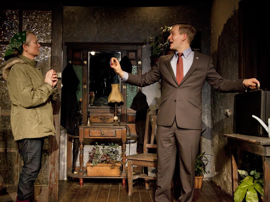 The first thing to say about The God of Hell at The Old Fitzroy theatre, is that Rodney Fisher’s set is absolutely astonishing. It stands on an elevated stage, not a natural occurence at the venue and therefore its own kind of startle, even before the beautiful detail of the set comes into its own. The setting is Frank and Emma’s homestead, complete with working stove (a highlight of this production is the real sound and smell of sizzling bacon being cooked – such a great idea) an abundance of live house plants and a door with stained glass. It’s a beautiful set and integral to the joy of the entire performance, as is Fishers direction through which he gets great performances from his cast who do a lot with a complex and at times highly circuitous script. Lyall is a sympathetic Haynes, immediately likeable, and suitably nervous. McIvor is a beautifully sleazy Welch, handing out his small American flag cookies and decorating Emma’s house in strings of American flags. His is probably the most difficult part, he gets the bulk of the confusing lines, he is completely American in style and substance (or lack thereof) and he is a menacing character, but McIvor takes all of this in his stride having fun with the role, the lightness adding to the creepy concept of who his character represents. Poli is a gentle, caring highly suggestible Frank for whom we all feel deeply, no matter how we may feel about his characters choices, but the standout is Downing’s Emma, the person most often on the stage, carrying the bulk of the narrative on her shoulders. Emma is the earth around which the small male moons rotate and Downing gives her the essential grace and dignity the small farming woman deserves and commands. All the players are witty and very funny with their lines, and ease the audience into any of the very American cultural references by cleverly bridging the gap between the two nations. What is most interesting about this fine production of The God of Hell is the rather disarming connection between Australia and the United States Fisher is able to extract out of Shepard’s script which leaves us all with an uneasy feeling just as we clap and cheer for the wonderful night we’ve experienced.