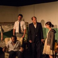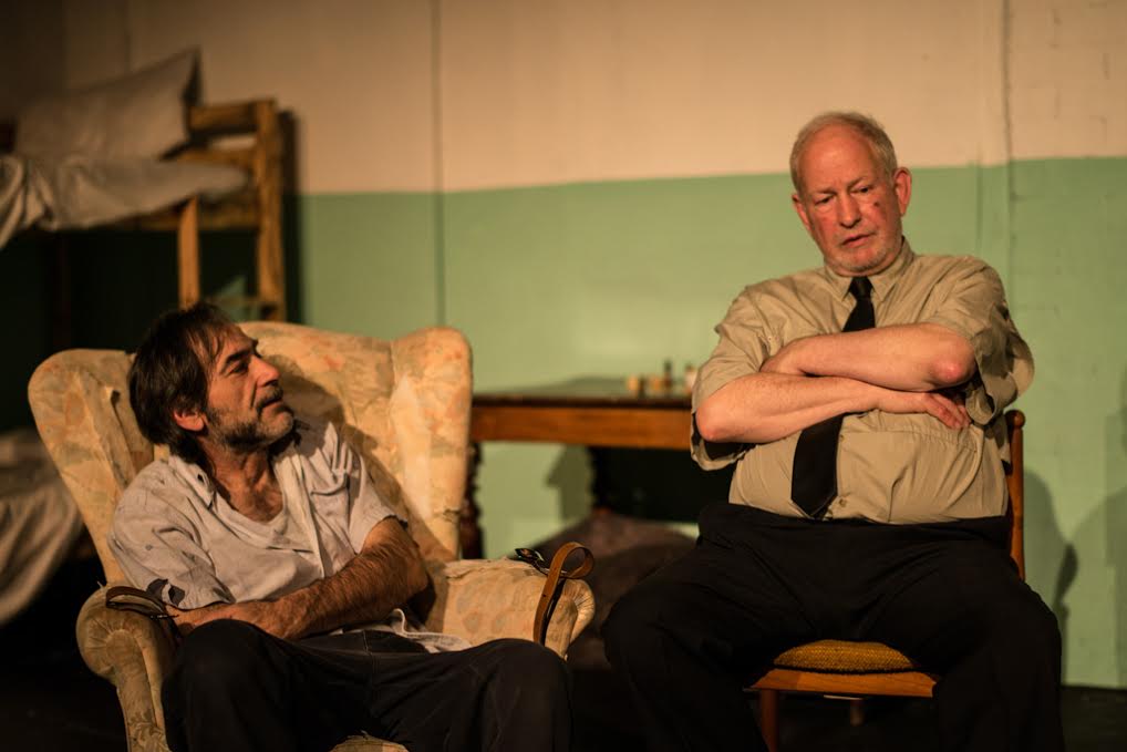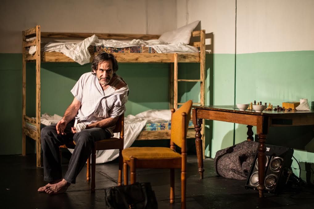 It is this relationship to our heroes and the all important moment when all heroes die for us – the moment many philosophers would argue a child becomes an adult – that is under discussion in Brother Daniel, and therefore becomes available for all of us to examine in our own lives. Unless you are inspired to create something standing on the shoulders of those who inspire you, do you have any right to be inspired? Is everything else just a glamorising of an unworthy entity, the endless sucking at the teat of a frail human creature as much at odds with your perception as they are with their failure to live up to their own words. Travis Green directs the character Daniel and Adam Hatzimanolis performs him as just such a spent creature, one made as weary by their successes as by their failures. The inspiration he evokes has become a commodity and competing ideologies wrestle for his magic touch. Hatzimanolis is a tired Daniel, a beaten down by the weight of power Daniel, a man who both lives up to and inevitably fails to embody the spirit of what he has come to represent. Mel Dodge is Lucinda, the young woman made free by Daniel’s revolution, who used her fresh actioned hope to become a lawyer she mistakenly thought he would be grateful for. Her beholden adoration has no value, a puzzle shared by worshipers of all kinds. Dodge is excellent here as the fervent, passionate young sycophant, her intense and unwavering gaze upon her idol chilling as it slowly gives way to confusion and the horrors of the truth of her enemies. But it is not just Lucinda who needs to come to terms with who Daniel is rather than what he represents. Vincent Andriano as Tony, the fellow prisoner and criminal sees Daniel better than his followers, and is as much a protector of the man as he is willing destroyer of the myth. Andriano (who was really fantastic earlier this year as The Monster in Genesians Frankenstein) plays Tony as a wily kind of humanist, far too perceptive for his own good, and too cynical for his own redemption. Another fascinating relationship is the one between Daniel and his former revolutionary mate Jonathan, here played by Errol Henderson. As Daniel has been tortured by the jailer Richard (a very easy-on-the-eye Richard Hilliar, who still manages to be menacing) the sleazy battle of wills between Henderson and the depleted Hatzimanolis is one of the highlights of the show. These central performances are surrounded by Jeannie Gee as a protective and conniving mother, Naomi Livingstone as a struggling and forced to be sneakily resourceful Rhema, and David Attrill with a beautifully subdued, thoughtful performance as a guard.