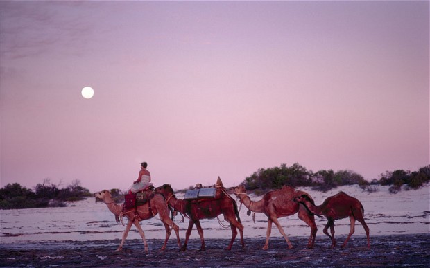 So Tracks then, refers to both the path she follows and the one she leaves behind as it is interpreted by us the viewer, and all the others eyes behind lenses that seek to make some sort of meaning of this extremely intelligent and very unusual woman. The focus on the camera is a very clever way of getting around the primary problem for telling Robyn Davidson’s story, despite her desire to never be on film. This perfectly matches the indigenous Australians perspective while never appropriating their position. The Walkabout ritual (as I understand it) was one reserved for young males who took to the bush to follow the paths or “songlines” of their ancestors, mimicking their great accomplishments while doing so. Robyn Davidson does exactly the same thing, her desire is to follow in her father’s footsteps and mimic his accomplishments. However she doesn’t appropriate the indigenous cultural ritual, rather she never reveals the connection and the press around her are too slow witted to burden her with any questions that may prove uncomfortable from that perspective. The local cultural leaders, and indeed other lonely living white folk wordlessly understand however, and that wordlessness becomes the perfect language. By the end of Tracks, we miraculously understand why Robyn Davidson never wants to answer questions, rarely speaks to anyone and doesn’t want to be filmed.
