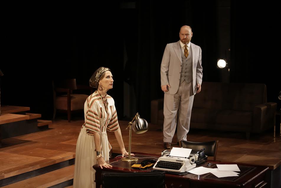 If the set has a handsome retro vibe, so does Andrew McFarlane as Sindey Bruhl, adding chic to the sometimes tired and trite dialogue that in the hands of the wrong person, could fall horribly flat. McFarlane is a streamlined, handsome Bruhl, confident instead of dithering, sly and witty instead of foolish and out of control, and the slight shift in emphasis (I’m comparing him to Michael Caine in the film version) compliments Turners retro aesthetic. The play opens with a wonderful back and forth between Sidney and his wife Myra, here played by Sophie Gregg and the pair create a commanding opening sequence that engages the audience immediately, prepping them for the constant too and fro, twist and turn of the rest of the play. When Georgina Symes enters as the psychic Helga Ten Dorp the wit gets sharper and the meta aspects of the play strengthen into a delicious series of little mind games, that if you know your thriller theatre makes for a great game of spot the reference.