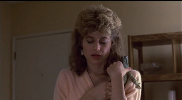 Still, there is no doubt that Cameron needs to turn powerful women into mothers, because he will get to and fix Ripley in the same way in Aliens. But equally, there is no doubt that the Sarah Connor character is an enormous break with the suspense/action film trope of the helpless female. Linda Hamilton is never subjected to the male gaze; even when we see her breasts in the love making scene, the shot is sentimentalised, not sexualised. Her image will change famously in the second film, as will her performance, which is still outstanding in the first, too often eclipsed by the iconic Schwarzenegger robot (one of my favorite things about terminator is his pure ARYAN GERMAN human experiment – I know he’s actually Austrian, but you get my drift here – no accent changes for Arnie) and Michael Biehn’s fabulously wily Kyle Reese. Sarah Connor is never an ordinary girl: She rides a 1984 Honda Scooter on the footpath, when she is stood up by her boyfriend (who owns a Porsche) she doesn’t stay home and sulk but takes herself out for movies and dinner, she has a pet iguana, she works out she is third in the phone book before the cops, she is clever enough to ask “why me” very early on, and she gets her shit together fast when under pressure. Cameron and Hurd give us a really interesting woman right from the get-go, in whom we see the revolutionary figure immediately. Sarah Connor is enormously popular with women, and there is no doubt that she broke the mold for us in terms of what we can look forward to at the movies.