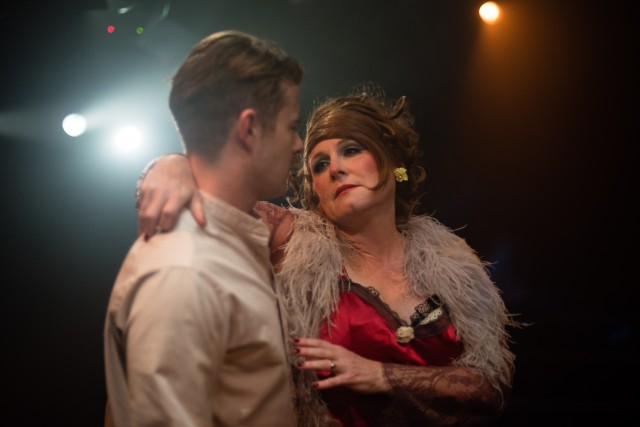 From the pure perspective of production, the play is an essential part of the theatre goers 2017 calendar. True to White’s vaudevillian love, The Ham Funeral is entrenched in a crumbling carnival aesthetic, consistent to the Dobell art work that spawned the original spark of the play. The chorus cast of Carmen Lysiak, Jane Phegan, Andy Dexteritiy and Johnny Nasser are suitably creepy as the repulsive family, and Nasser brings his own wit to the wisdom of the dead landlord. Sebastian Robinson is our poet, soaking his lush words with a superb transitional accent and Jenny Wu is the floating, exquisite animus. However, just as the play belongs to Kate Gaul, so it belongs to the roaring performance of Eliza Logan as the great Alma Lusty, the motherland, the place of our dead, dustbin birth. Logan takes the role and makes an adventure of a meaning which a world struggling with a singular language has proposed as its question. The Ham Funeral is officially set in London, but there is no doubt in this production you are watching the emergence of a ferociously Australian psyche.