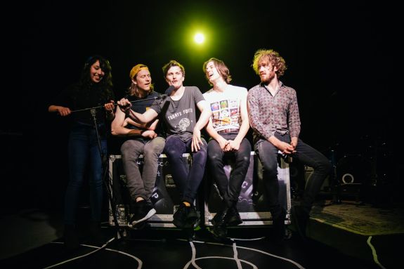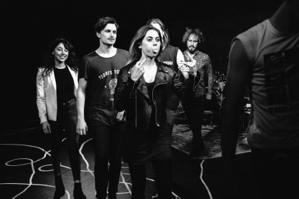 FRONT examines these issues with a deft yet light touch. Its real brilliance lies in its ability to twist the audience from theatre mode into concert mode, back and forth in a delightful dance of confused identity for the audience. The always very funny Charlie Falkner is an excellent Keith Moon archetype while Jack Anwing plays a charisma-less Sid Vicious. Andreas Lohmeyer is a warm hearted drummer, beautifully posited against Lincoln Vickery’s tragic bildungsroman as lead singer. Elle Harris is the put upon manager who convinces us that the role is a member of the band itself, and Mary Soudi brings a very strong performance in her role as the record company exec made harsh by years of dealing with self-important fly-by-nighters. FRONT is filled with archetypes, stereotypes and phenotypes. It is written by a musician with a love and loathing for his industry. It’s a funny, witty analysis that moves deeper into the crossover between theatre and concert than we typically see.