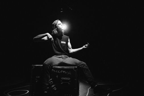 Therefore when Michael Abercromby places the performance in a play, the empty gestures take up a different tone, and we can see and examine “The Band” as a poetic creature. Here its tragedies rise to the surface. Abercromby’s young protagonist (Lincoln Vickery) is all about the music, but he is corrupted by his inability to see himself right from the start. He isn’t all about the music; he is all about the permission. As he seeks permission and acceptance from different authorities, he rises to his own surface. Divisions within the band are inevitable. Indeed, after witnessing FRONT, one is left questioning how any bands survive.