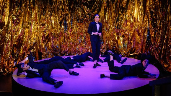 A directive by Nietzsche taught us to re-examine cruelty. Almost everything about higher culture, he exhorts us, is somehow based in cruelty. “That which constitutes the painful voluptuousness of tragedy is cruelty; that which produces a pleasing effect in so-called tragic pity, indeed fundamentally in everything sublime up to the highest and most refined thrills of metaphysics, derives its sweetness solely from the ingredient of cruelty mixed in with it.” And with There Will Be A Climax, Alexander Berlage sinks us into this realm again. We the audience witness six characters, human while non-human, upon a revolving stage, grappling with life’s absurdities and mysteries. Desperately they seek response from the audience. In both the response and the non-response there is an inherent cruelty – we either feed them prawn chips as if they were caged, or we ignore them out of discomfort as they become more desperate for our engagement. Pleasure and peace are fundamentally absent but for their counter occurrence against confusion, regret and sadness. They are the Roman in the arena, the Christian on the cross, the Spaniard’s bullfights and the Parisian worker with a penchant for bloody revolution. It is not true that cruelty becomes pleasure in the sight of it inflicted upon others, for we must all lay claim to a secret desire to have it for ourselves. There is an irrefutably abundant joy in suffering, of making oneself suffer. Today, Capitalism (perfectly mirroring all religions) preaches that success belongs only to the hard worker, the self-denier, the de-sensualised, the de-carnalised, to those who embrace the puritanical spasms of guilt, contrition and repentance. What is porn other than the grinding promise of unfulfillment? What is fat free milk, decaf coffee, salt free butter, sugar free everything and detox other than self-denial? What is the cult of the gym other than an ancient Christian ritual of self-flagellation?
