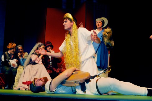 Susan Stapleton equally calls forth fine performances from her cast. Stand outs are Rosemary Ghazi as Puck and Donna Randall as Hippolyta who each bring an added depth to their characters that transports the production. Haki Pepo Olu Crisden is a commanding Theseus and a warm inviting Oberon, making a striking and interesting physical difference with each role. Russell Godwin is a very funny Nick Bottom, perfectly pitched against Catherine Waters straight man like Peter Quince. Kathy Goddard does a great job as Robin Starveling carrying around her puppet dog that melts our hearts. The four lovers Kim Jones (Hermia) Dimitri Armatas (Lysander) Rachel Howard (Helena) and Douglas Spafford (Demetrius) are equally playful and manage to convey their crazy love affairs and tangles with clarity and wit such that we never lose our way. To this productions credit, the ‘rude mechanicals’ play remains light and vivacious, despite comply posited problem of it occurring as an afterthought in the play. Credit to Susan Stapleton for keeping the continuity and joy high throughout this segment of A Midsummer Nights Dream, as it is tricky to get right.
