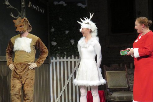 Shane Bates does a wonderful job calling forth a well-chosen cast who do justice to Roger Gimblett’s efforts. Melanie Robinson is a marvelous addition as the extremely hard-working Mrs. Christmas (it’s a very funny and enjoyable running gag that she struggles to get to all her ‘meetings’) while Elisabeth MacGregor is a glorious surprise as an all new character Miss Calendar. She gets one of the shows few solos and it’s a beautiful, heartwarming moment. The all-important trouble making reindeers are Juniper (Chris Hamby) and Snowflake (Rosanna Hurley) who bring the play’s conflict to life and add their own touch of pizazz to proceedings. Rosanna Hurley is particularly gorgeous as she plays out her antics and brings a too-cute-to-be-true sweetness to her role.