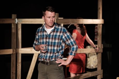 A standout in this production is Kate Betcher’s character analysis. A modern interpretation of May, it is through her performance themes meld into the contemporary. The “beaten-down-by-life” misery so important to depict in the 80s has been replaced by a smouldering rage that one presumes will propel her to action. Her date Martin is just a date, he does not occur as her life raft – she’ll work that one out for herself thank you very much. If Eddie looks lost, it is in May we sense any hope for the pair survives. Julie Baz’s choice to cast younger protagonists injects Fool For Love with hope, despite the enormity of the troubles inflicted by the father. Neil McLeod’s Old Man ghost-walk occurs as a thing of the past. May’s modernisms and The Old Man’s bygone era play themselves out on the bodies of the young men, particularly Eddie, who sits on the precipice of manhood. Amid the sublimation of the great American Cowboy, the young man and woman attempt to forge a path forward, burdened by the sins of the fathers, while seeking Existential Being rather than eking out a miserable existence determined in utero.