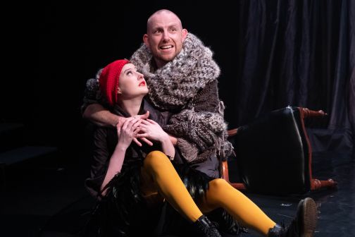 An interesting side note exists in the biological determinists representation of the Mastiff (Thomas Campbell) and the tragic Moor-Hen (Alex Francis). The old chestnut of nature versus nurture is called forth in a symbolically clunky but strangely compelling evocation of Male (violence and destruction) and Female (compliance against her better interests) interactions. From a Queer perspective it’s a superb and wholly damning argument against ‘straight.’ From a bio determinist perspective, the small skit (play within a play – get it) reveals the absurdity of our scientific justifications of human behavior – when have you seen a Moor Hen and a Mastiff fall in love or produce offspring? However, again, the spirit of the authors intent lies less with the text and more with performance and direction as the pair of actors bring the parable to vibrant life including all its violent absurdity.