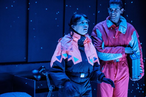 A beautifully pared down set design by Jeremy Allen allows for Benjamin Brockman’s lighting design (he is assisted here by Ryan McDonald) to move forward. The modalities work to underline and enhance dialogue and text, forging drama from the spirit of the play’s themes rather than use a glamorous distraction. Together with Ben Pierpoint’s composition and sound design and Paige Walker’s dialect instruction (the accents and inflections are entirely cohesive) the visual and auditory treat that is Angels in America finds its power in a subtle and intimate space. Maya Keys true to period yet equally subtle costuming and the clever work of makeup artists Annabel Cameron, Ciara McCarthy, Melinda Naylor and Eilidh Strachan work properly within theatre boundaries to create intimacy with the witness rather than alienate by adhering to rules suited to a larger theatre space. Multiple behind the scenes arrangements are handled with invisible efficiency by assistant director Daniel Cottier, Stage manager Jack Powell, Deputy stage manager Hannah Crane, company manager Oliver Harris, Assistant stage manager Christopher Starnawski and associate producer Jens Radda.