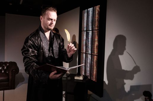 This production of Joseph K by Secret House is a strong offering from a theatre company that continuously surprises with its ability to deliver the goods. Another superb collaboration between Sean O’Riordan and Secret House, great things have come of the decision to move away from classic plays and inhabit these other interesting text-based worlds. Sean O’Riordan offers a stunning series of moving images on a beautiful set by James Smithers that fully appropriates the designer intimacy of the Limelight Room and still creates an enormity inside the alluring space. With outstanding costume design by Hamish Elliot and evocative lighting by Alex Holver, the exquisite nightmare state is properly aroused under Sean O’Riordan’s control. With it all accurately managed by stage manager Milly Grindrod and choreographed by Virginia Ferris, Joseph K becomes a sophisticated visual experience that leaves one immersed in beauty while managing our own internal nightmare.
