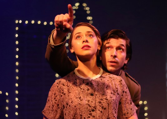 The contrast that helps us arrive at a textual point comes forward in the character Elaine performed by Elle Harris. If Simone is the realist who refuses the imagination, Elaine is the fantasist who loses herself in it. For Paul Gilchrist this strange positing is made universal in the time period showing a Europe at war and a United States preparing to enter and take the world by storm. The Musical is posited against The Theatre via the two women and the two cultures they come to embody. For Simone, the flashy American style masks naivete and unpreparedness. For Elaine, Americans are optimistic, believe in transformation and want to evoke a sense of safety. For Paul Gilchrist the American dream is a classic example of the failure of the imagination. Elle Harris brings a dreamy beauty to the wide-eyed optimist and a modernity that transports the play set in 1942 to our modern day. In a delicate and nuanced performance, Elle Harris presents a character that embodies the theatre. When she pines for the promises of America, she pines for all those who dream of being discovered.